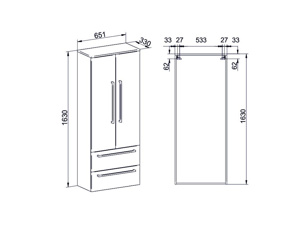 Mereo Bino, koupelnová skříňka vysoká 163 cm, dvojitá, Multidecor, Bílá lesk perlička