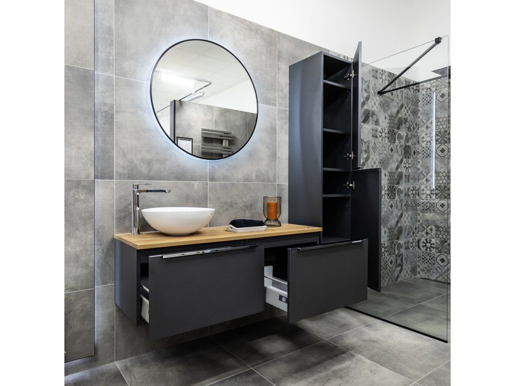 Série koupelnového nábytku Mailo umožňuje kombinovat skříňky do mnoha různých variant. Vytvořit tak lze jak složité kombinace do velkých koupelen, tak minimalistické řešení v moderním designu. Šuplíky jsou vybaveny designovými chromovanými úchytkami a značkovými pojezdy Strong s pomalým dovíráním. Na výběr je ze tří barevných kombinací, bílá lesk, dub Riviera a antracit. Skříňky jsou dodávány smontované a všechny jsou určené k zavěšení.Nábytková keramická umyvadla s jedním otvorem pro stojánkovou baterii v luxusním SLIM designu o tloušťce hrany pouhých 20 mm. S těmito umyvadly se splní Vaše požadavky na jednoduché a zároveň atraktivní vybavení koupelny za atraktivní ceny. Benefity těchto umyvadel jsou bezesporu funkčnost a líbivý vzhled. Umyvadlo je určeno pro nábytek, nelze instalovat samostatně na zeď. Zápustná umyvadla podpoří moderní a elegantní vzhled každé koupelny a doladí tak celkový design interiéru.