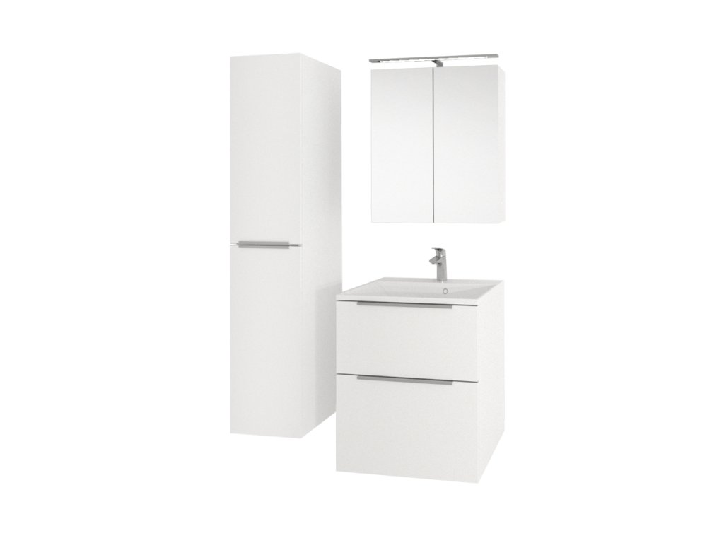 Mereo Mailo, koupelnová skříňka s keramickým umyvadlem 61 cm, bílá, chrom madlo