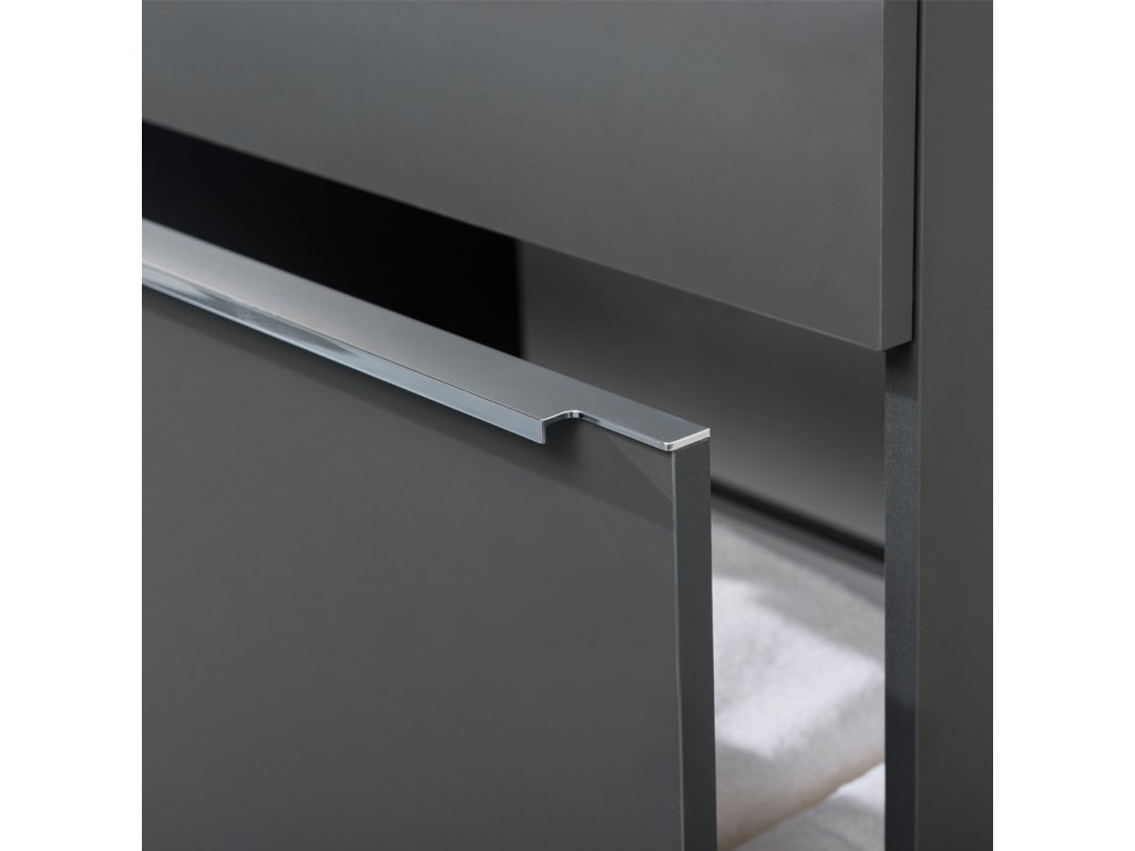 Série koupelnového nábytku Mailo umožňuje kombinovat skříňky do mnoha různých variant. Vytvořit tak lze jak složité kombinace do velkých koupelen, tak minimalistické řešení v moderním designu. Šuplíky jsou vybaveny designovými chromovanými úchytkami a značkovými pojezdy Strong s pomalým dovíráním. Na výběr je ze tří barevných kombinací, bílá lesk, dub Riviera a antracit. Skříňky mají laserové opracování hran a jsou dodávány smontované a všechny jsou určené k zavěšení.Umyvadlo z litého mramoru je ošetřeno povrchovou úpravou Gel coat. Jedná se o ochrannou vrstvu, která zajišťuje stálobarevnost a zvyšuje odolnost proti nárazu. Umyvadlo je určeno pro nábytek, nelze instalovat samostatně na zeď. Zápustná umyvadla podpoří moderní a elegantní vzhled každé koupelny a doladí tak celkový design interiéru. Umyvadla lze osadit do desky i ve více kusech vedle sebe.