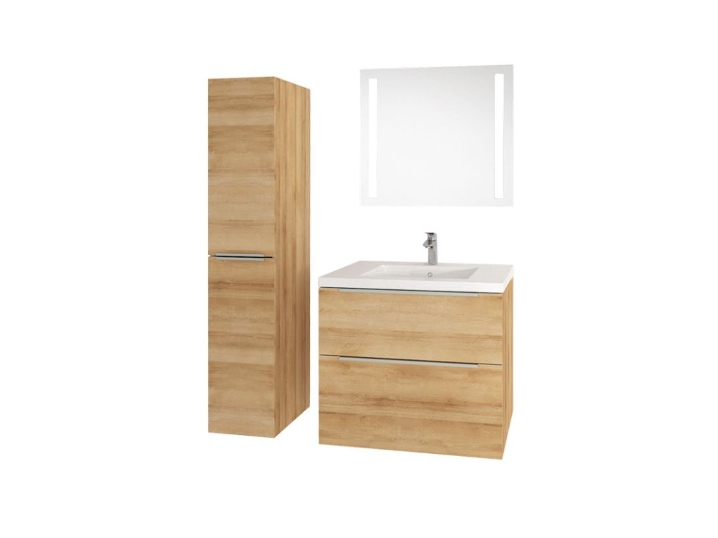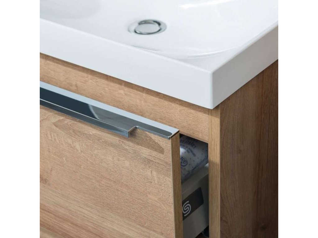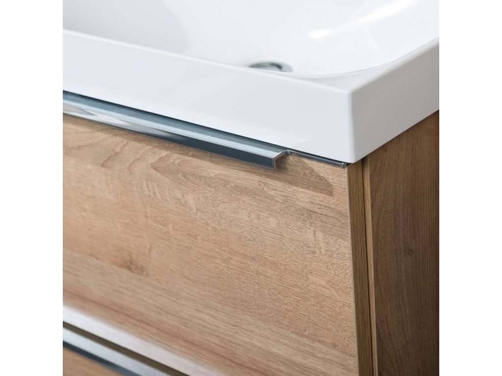 Mereo Mailo, koupelnová skříňka s umyvadlem z litého mramoru 101 cm, dub Riviera, chrom madlo