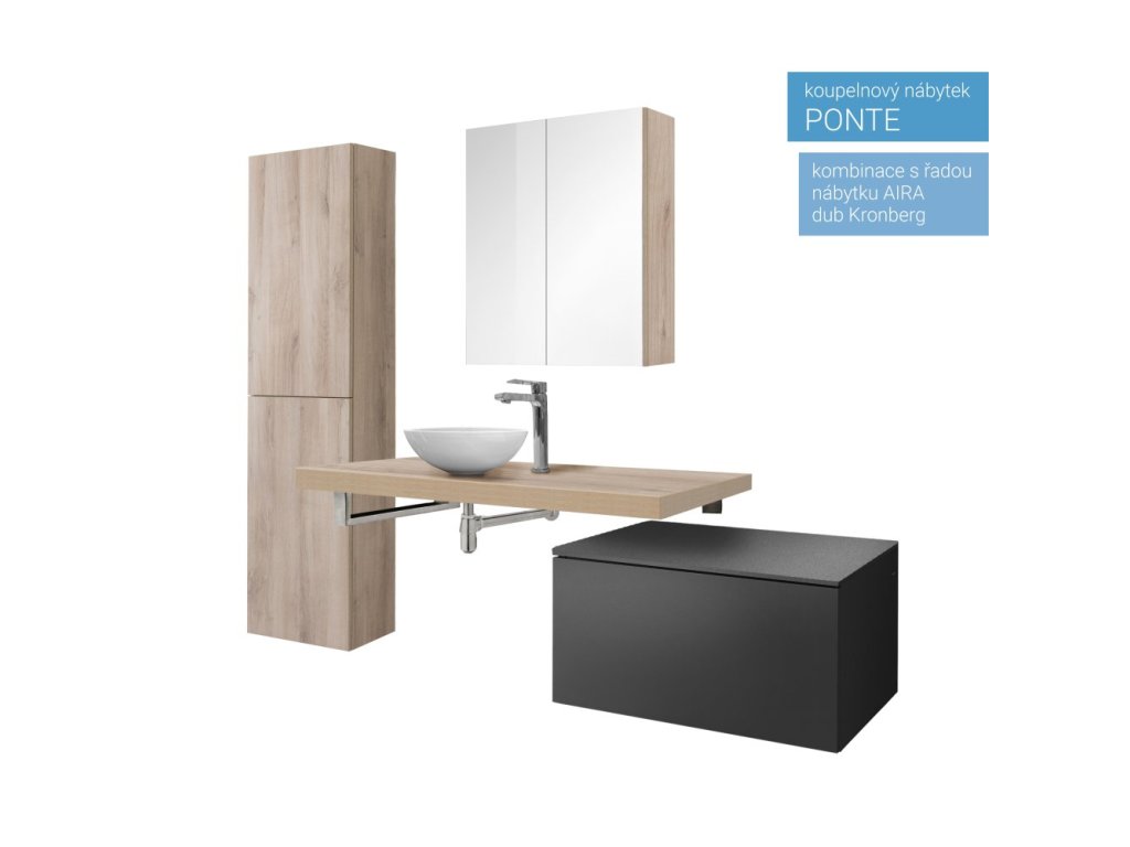 Série koupelnového nábytku Ponte umožňuje kombinovat skříňky a desky do různých variant. Umožňuje vytvořit kombinace do velkých koupelen i minimalistické řešení v moderním designu. Otevírání zásuvek je řešeno systémem push-open, tedy otevírání bez úchytek. Zásuvky jsou osazeny kvalitním německým kováním značky BLUM s pomalým dovíráním. Na výběr je mnoho barevných variant, Multidecor. Skříňky jsou dodávány ve smontovaném stavu a všechny jsou určeny k zavěšení.Doplňkové parametry