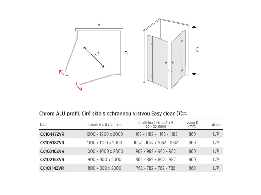Mereo Sprchový kout, Novea, čtverec, pantový, 90x90 cm, chrom ALU, sklo Čiré